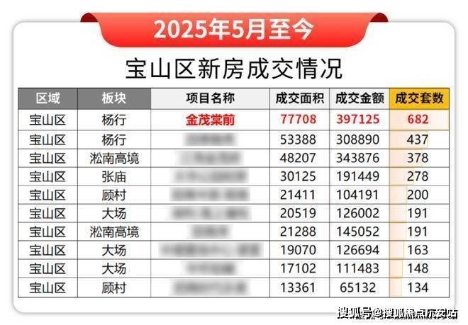 2025年5月至今,金茂棠前更是宝山区新房成交“三冠王”!成交金额、成交套数、成交面积并列第一!