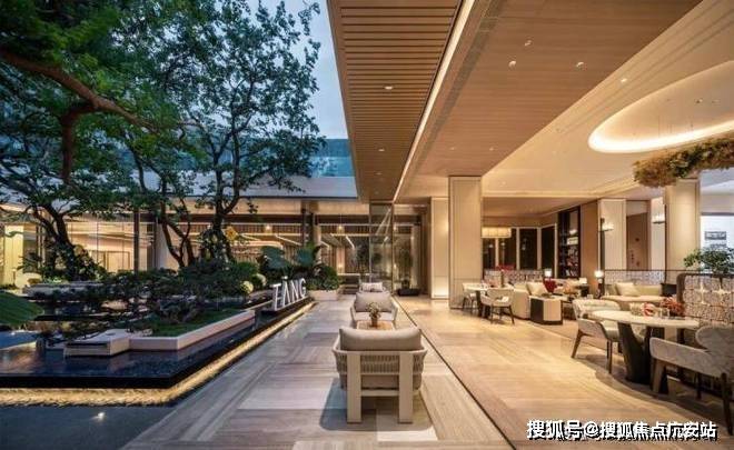 整个会所巧妙利用建筑高差营造立体多维的景观层次,打破沉闷压抑感,使下沉式会所与庭院景观自然衔接,实现社交空间与生态场景的无界融合。