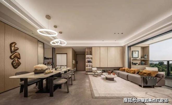 客餐厅一体化设计,尺度不凡的客厅搭配宽景阳台,不管是采光、视野、通风、私密性,还是实用性都十分出色。